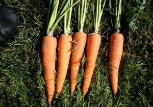 Kořenům ihned po vytažení odřezávám vršky, jelikož odtahují vlhkost. Dávám si pozor, abych si umyla mrkev. Mrkev sklízím pozdě odpoledne, je sladší! Při sklizni odřezávám vršky v úrovni ramen, to znamená, že odřezávám růstový bod. Osuším, dám do pytlů a dám do sklepa. Mrkev nevážu do igelitových sáčků a bez problémů vydrží ve sklepě až do nové sklizně.